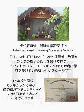 タイ教育省・保健省認定校 ITM (International Training MassageSchool)ディプロマ取得可能