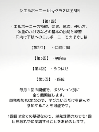 【8月14日,21日】エルボーニー1Dayクラス 第3回 横向き【告知】