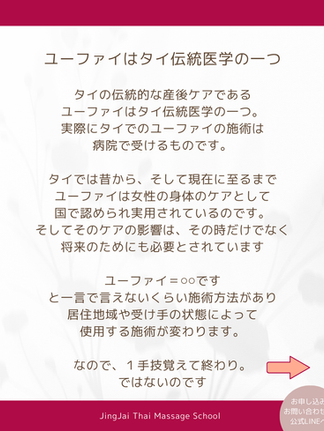 また、同日より施術のためのユーファイを学ぶ「ユーファイ協会式〜ホットブロック・ソルトポット・おなかのケア〜」(Lesson3)を開催します。
